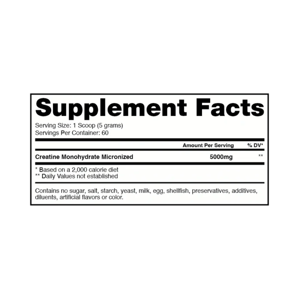 100% creatina monohidratada. Consulta la etiqueta del producto para información completa.